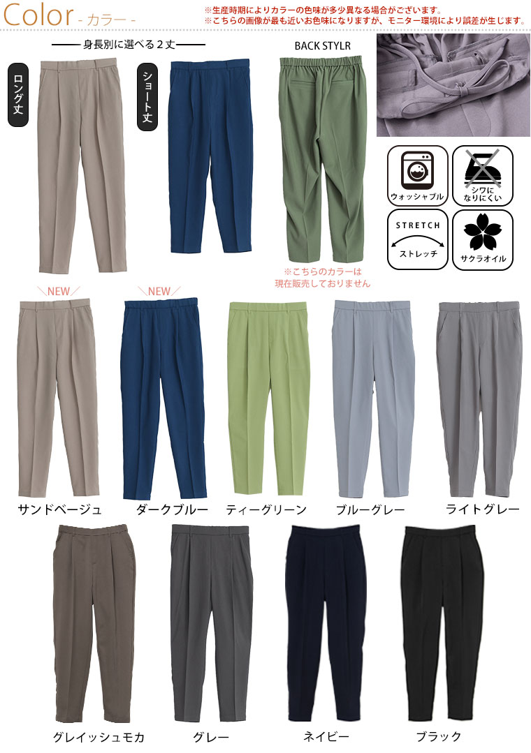 低身長さん高身長さん対応綺麗が叶う選べる身長別スラっと美脚ストレッチ テーパードパンツ