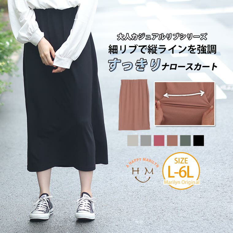 ありそうでなかった大きいサイズのリブ素材ナロースカート