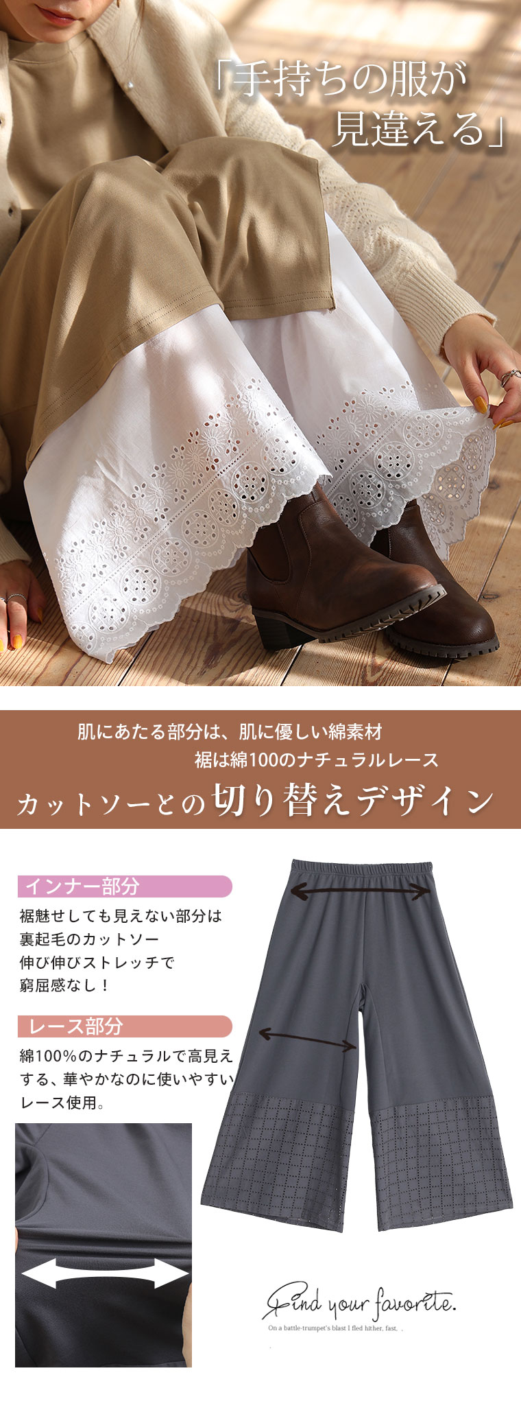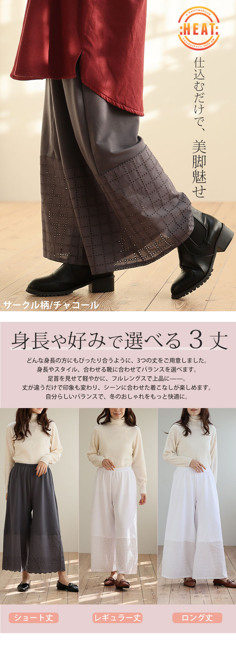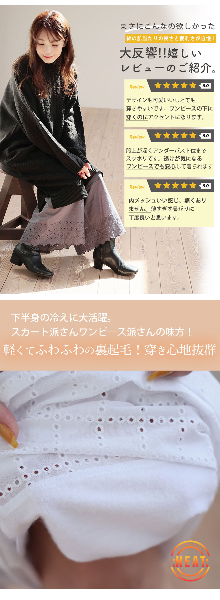 お腹周り腰〜太ももをあたたかく包み込む、裏起毛生地を使用しました。
