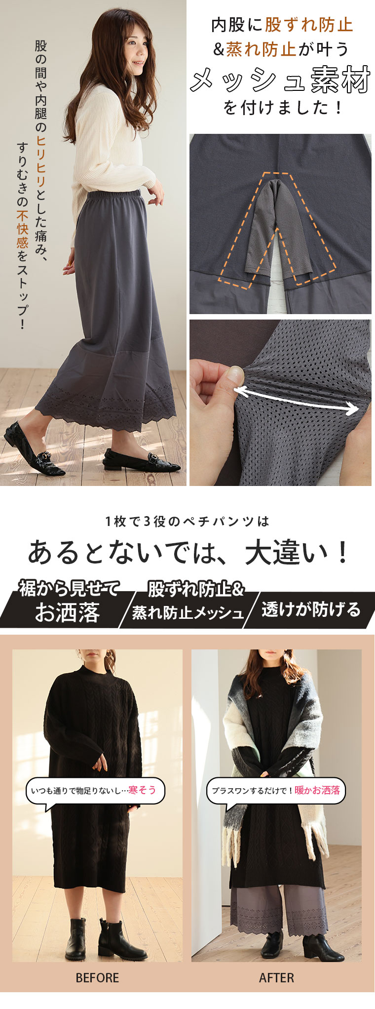 裏地あったか脱!股ずれ防止ぺチパンツ