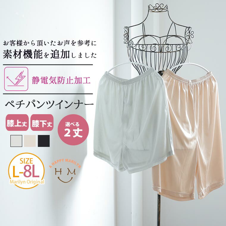 膝丈・膝上丈ともにジャストサイズでした。サテン生地なので柔らかく履き心地がいいですね!