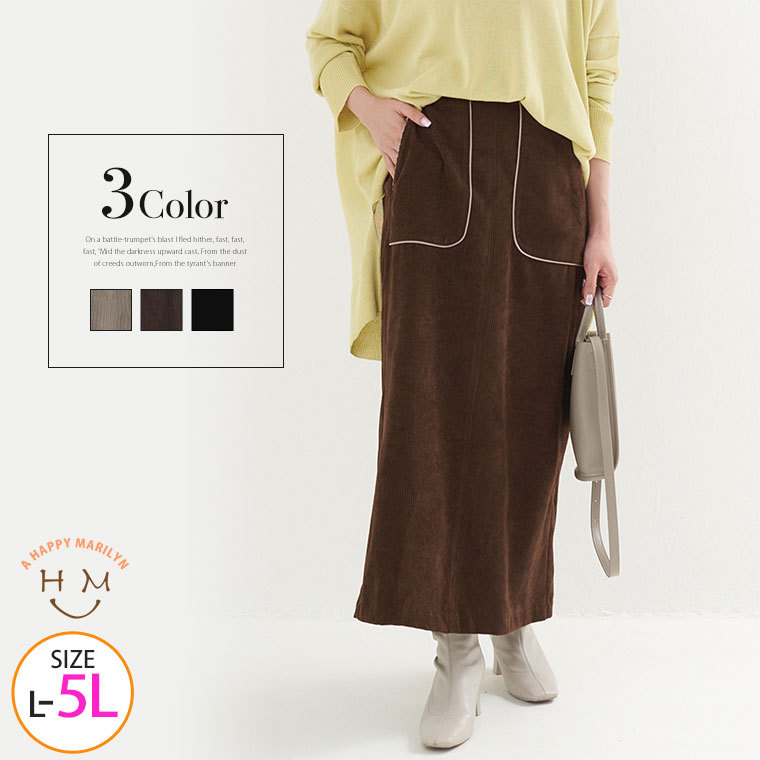大きいサイズ レディース スカート LAVEANGE パイピング コーデュロイ タイトスカート ボトムス LL 3L 4L 5L 秋 秋物 秋服 冬 冬物 冬服