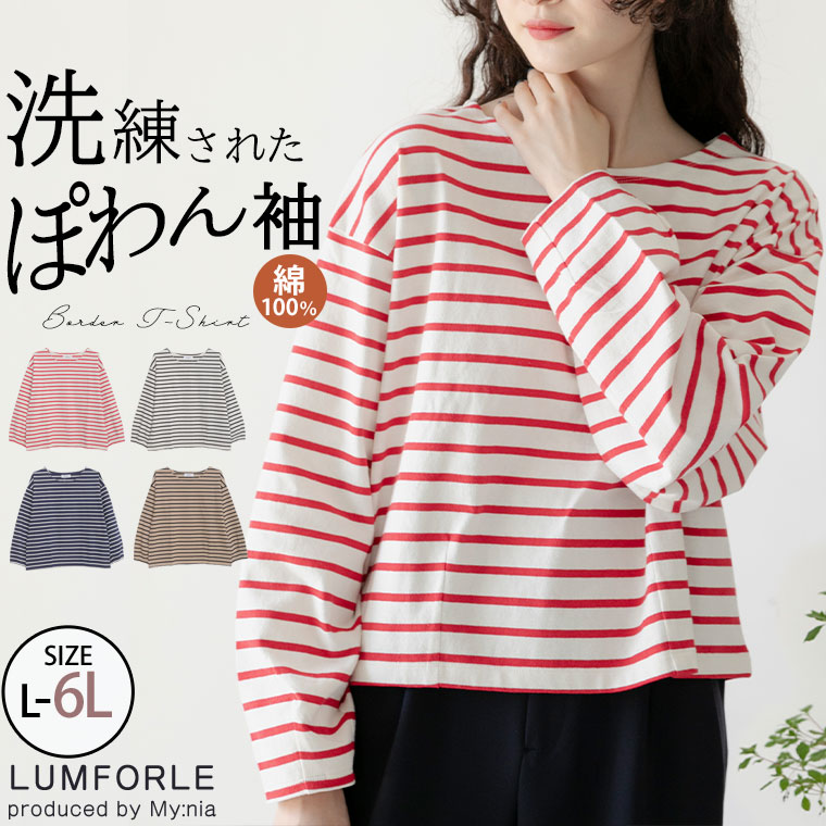 大きいサイズ レディース トップス LUMFORLE produced by My:nia 綿100% コットン ボーダー ロンT Tシャツ カットソー LL