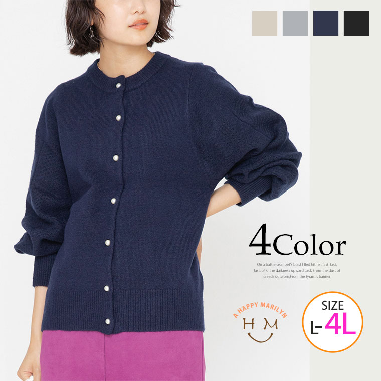 大きいサイズ レディース カーディガン LAVEANGE パール釦 クルーカーディガン トップス カーデ 羽織り LL 3L 4L 秋 秋物 秋服 冬 冬物 冬服