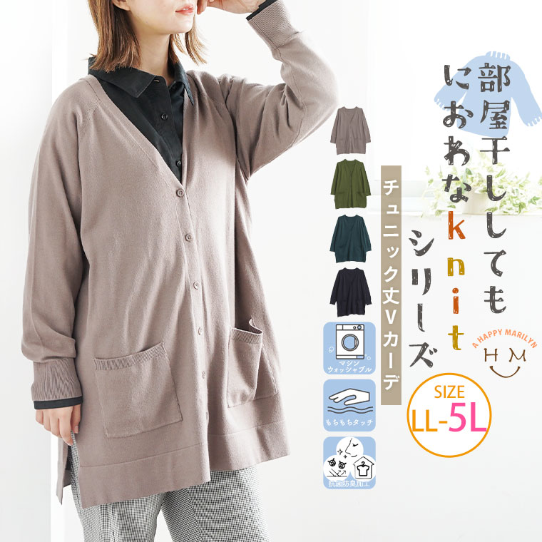 部屋で干してもにおわなknitシリーズ チュニック丈カーディガン