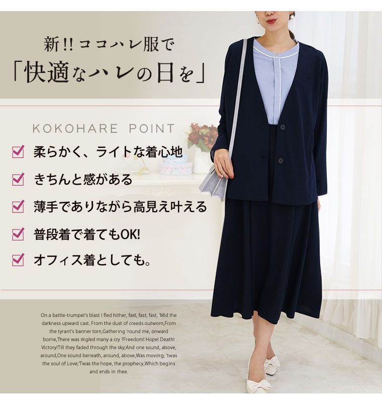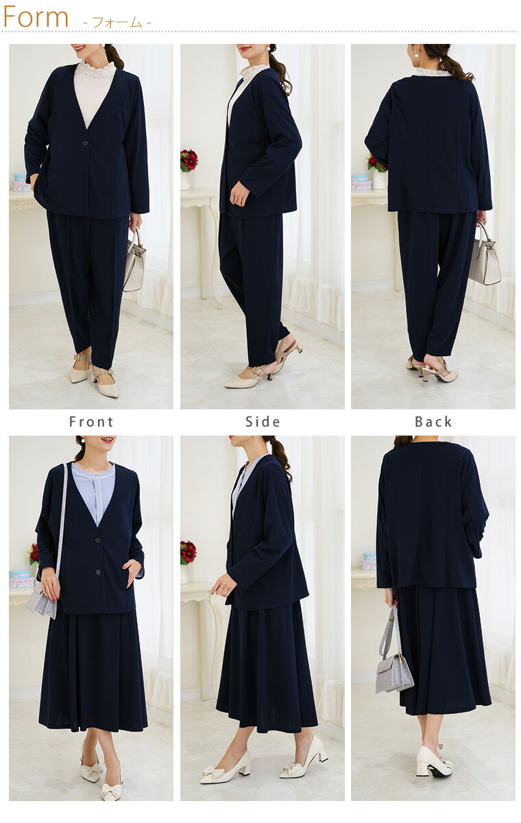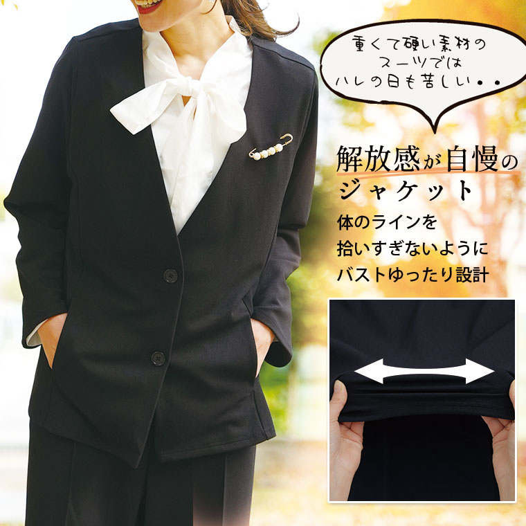 ノンストレスに着られる柔らかスーツ3点セット