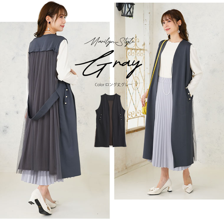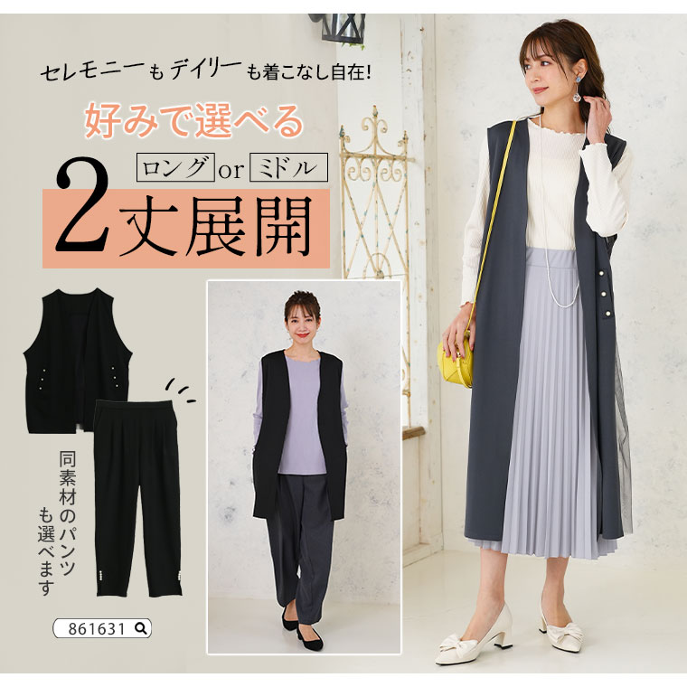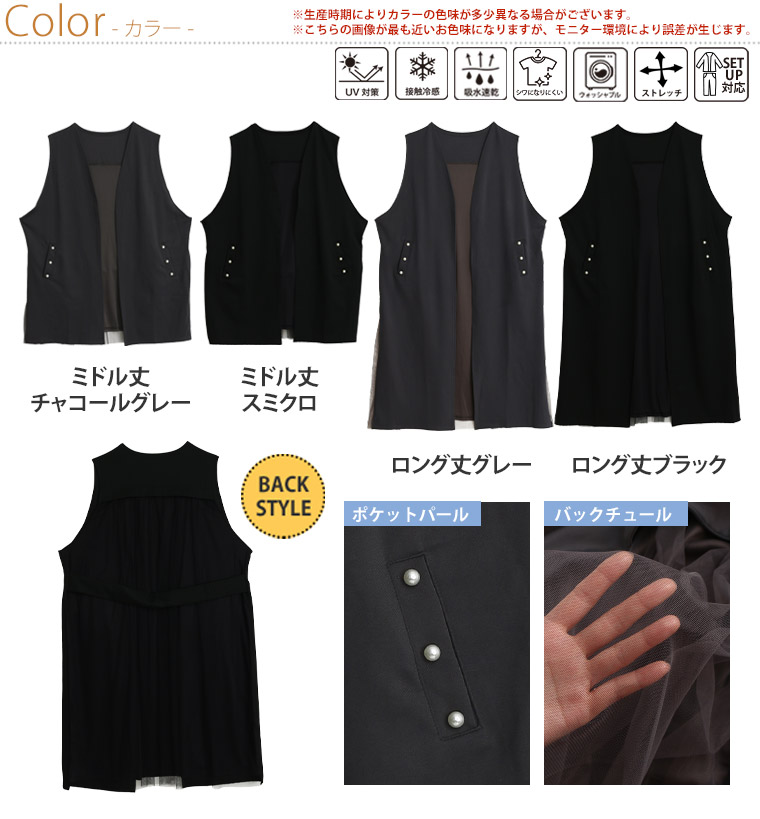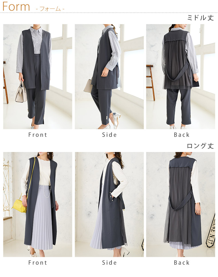 【Rin】丈が選べるストレッチバックチュールジレ