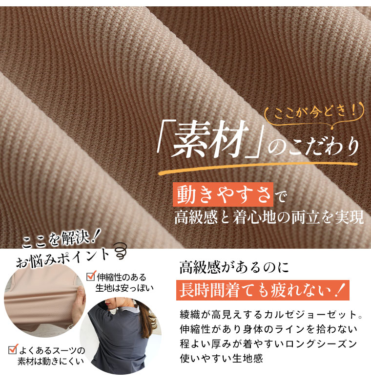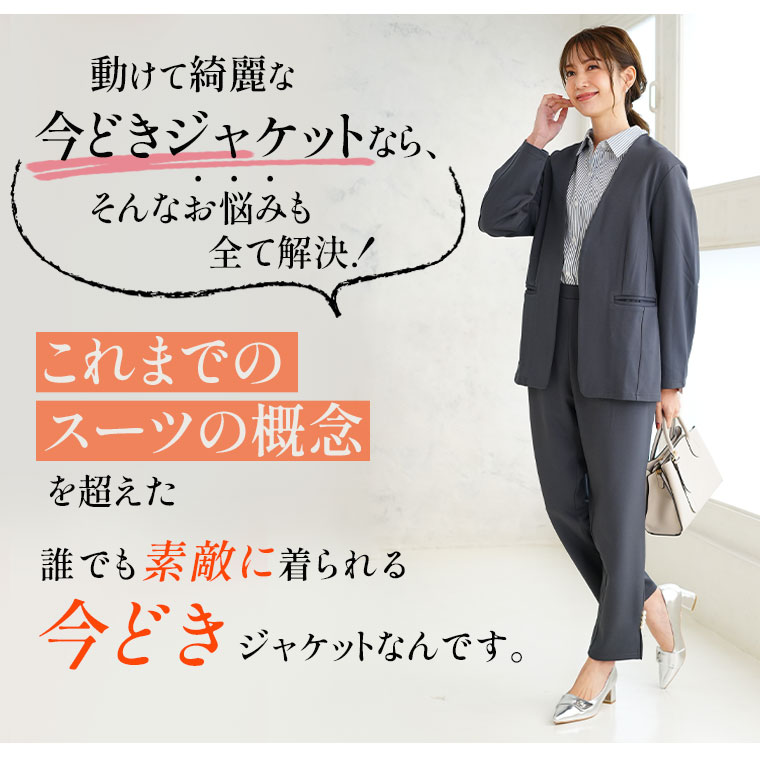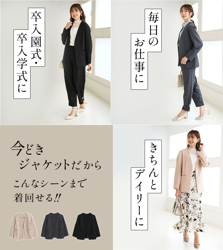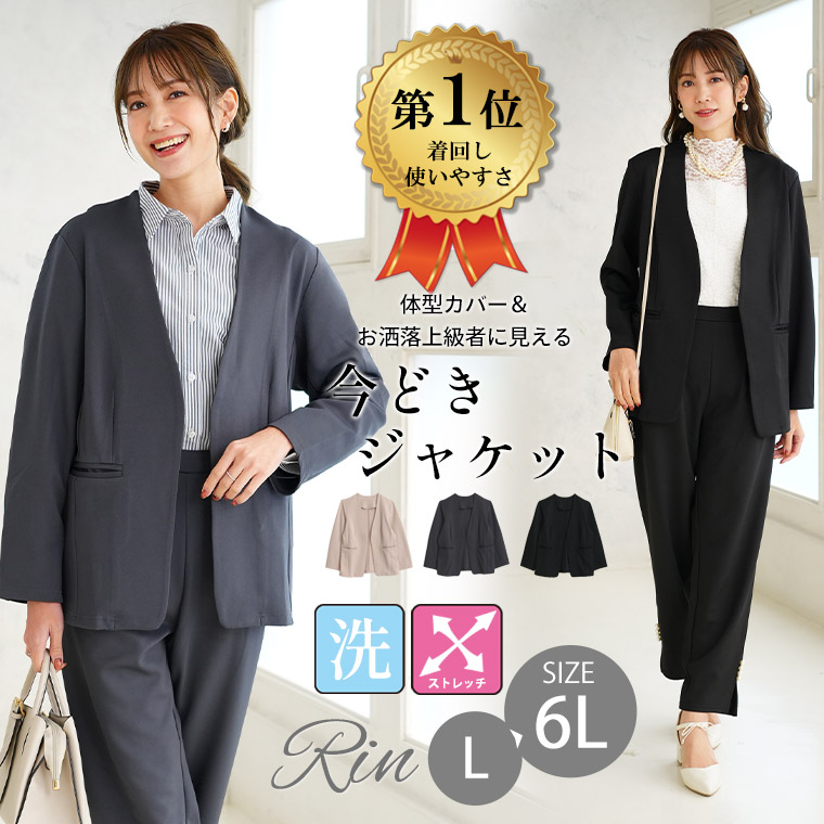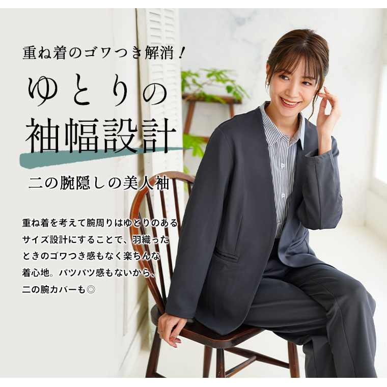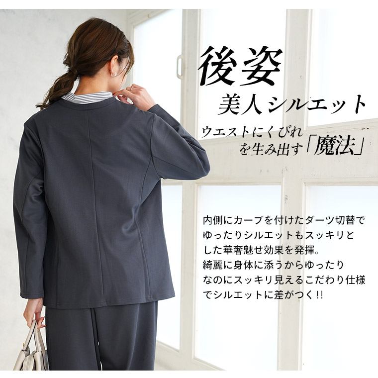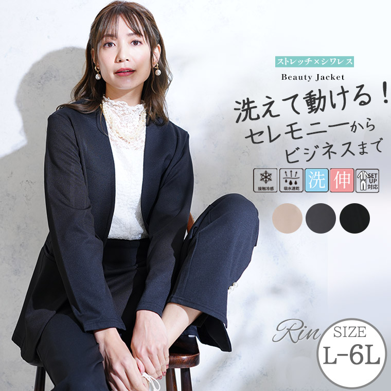 【Rin】スッキリ見えのストレッチジョーゼットノーカラージャケット