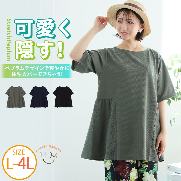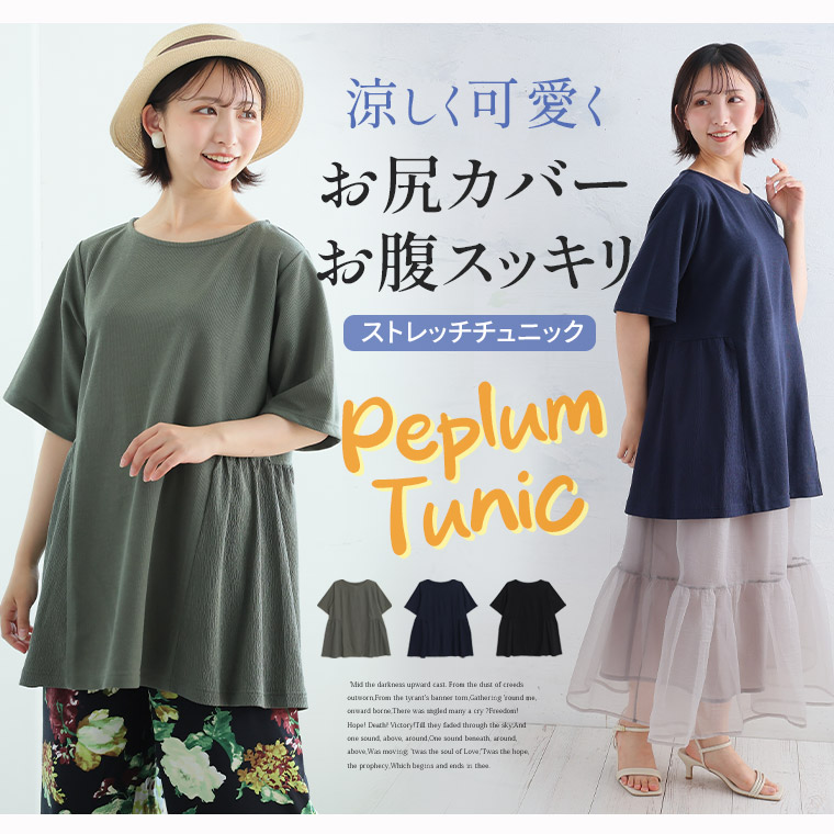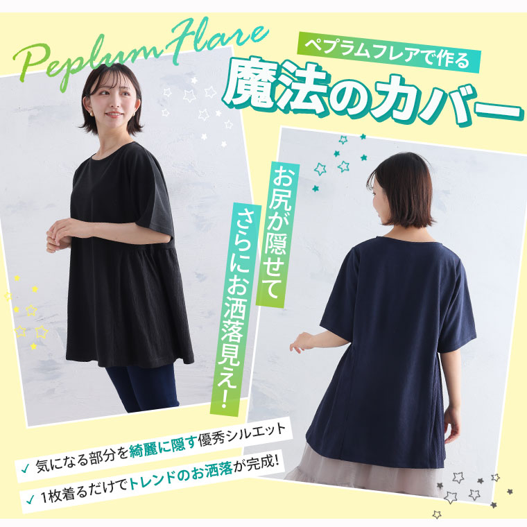 こだわりのサイド切り替えでお腹はすっきり見せ。ひらっとペプラムでお尻をカバー!