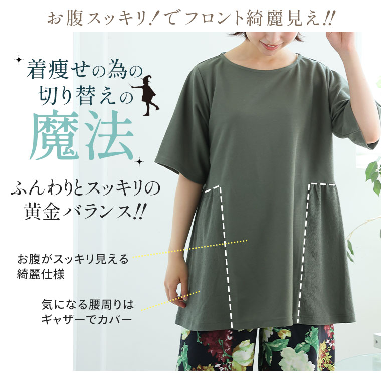 着るだけ簡単体型カバー!サイド切り替えチュニック