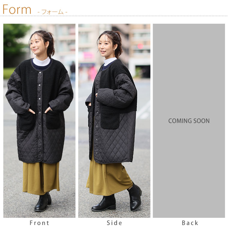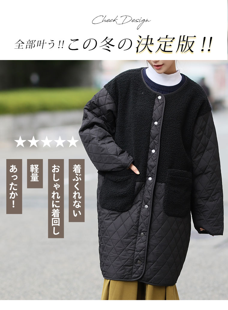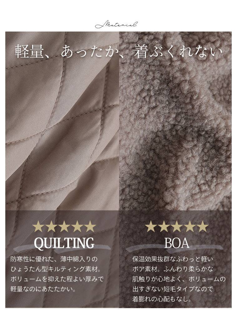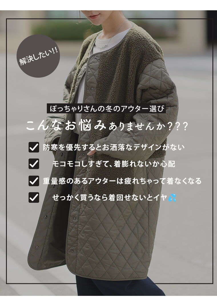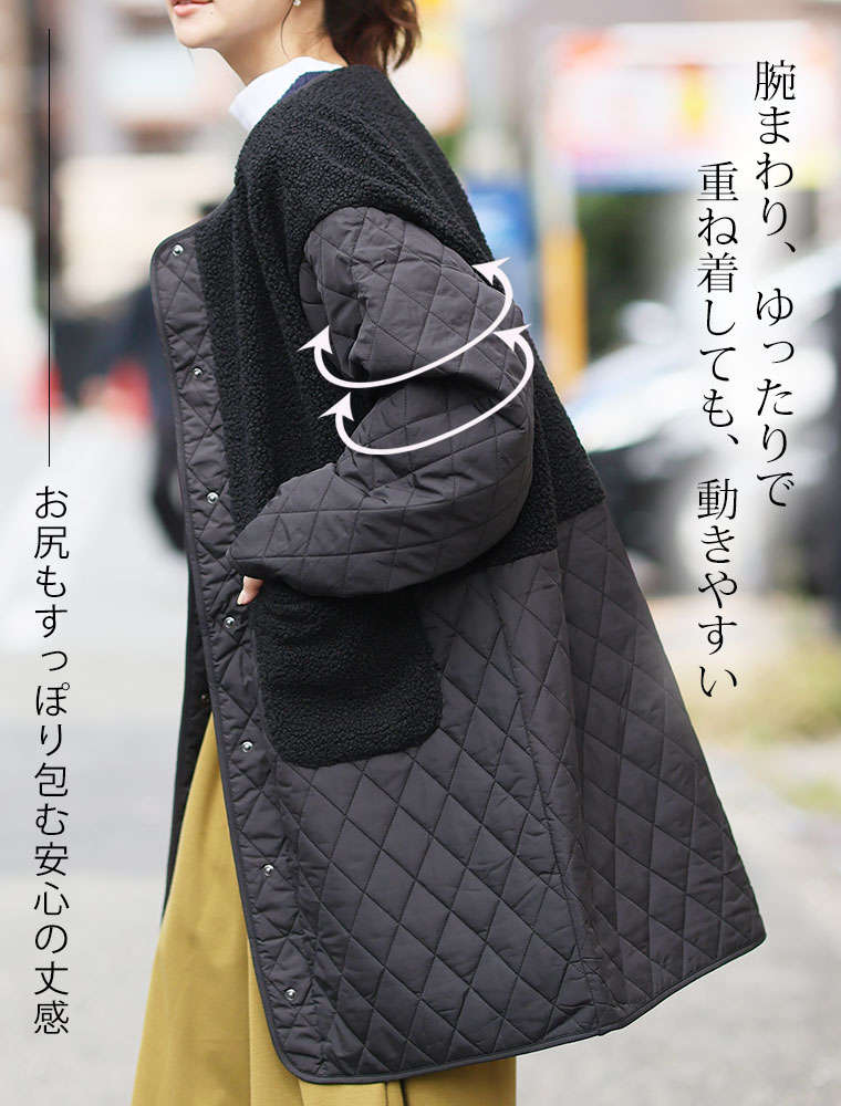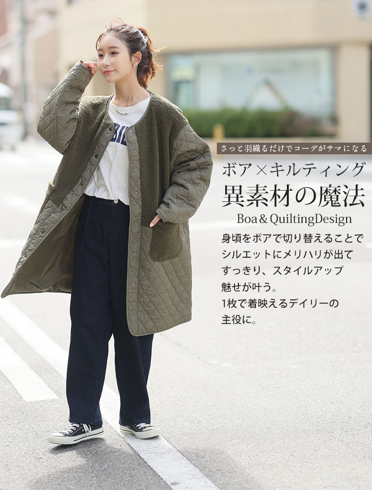 身頃をボアで切り替えることで、シルエットにメリハリが出てすっきり、スタイルアップ魅せが叶う。1枚で着映えるデイリーの主役に。
