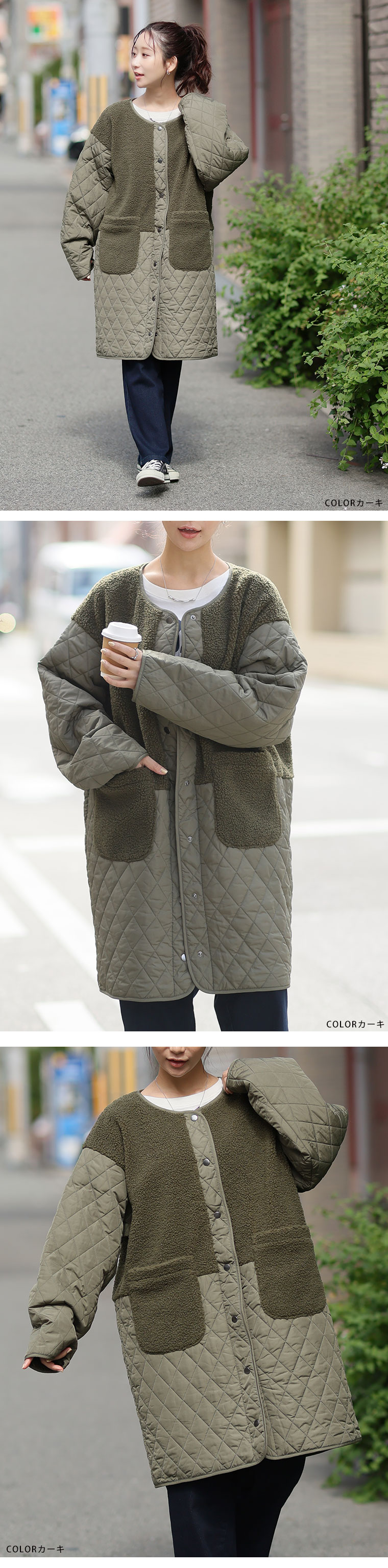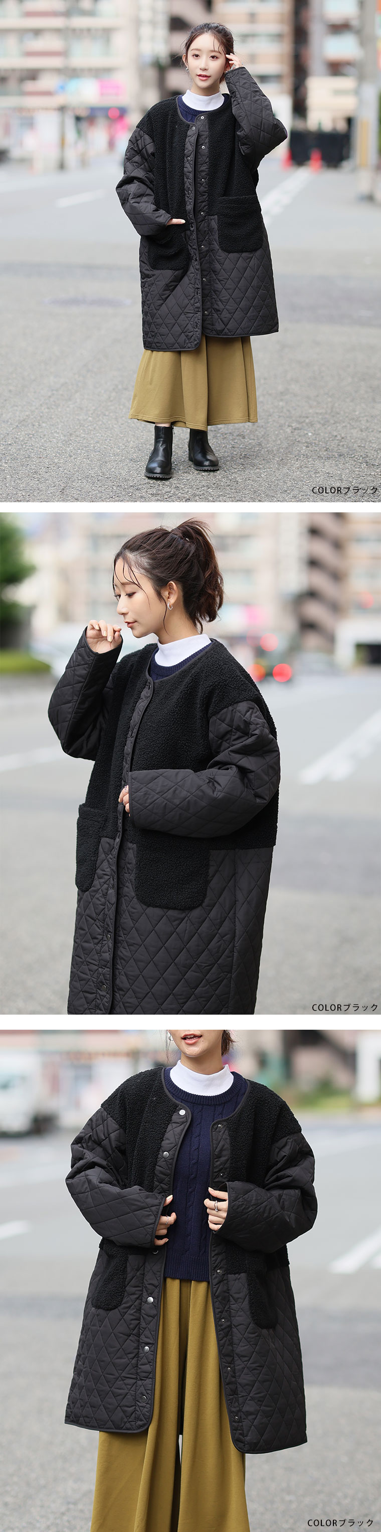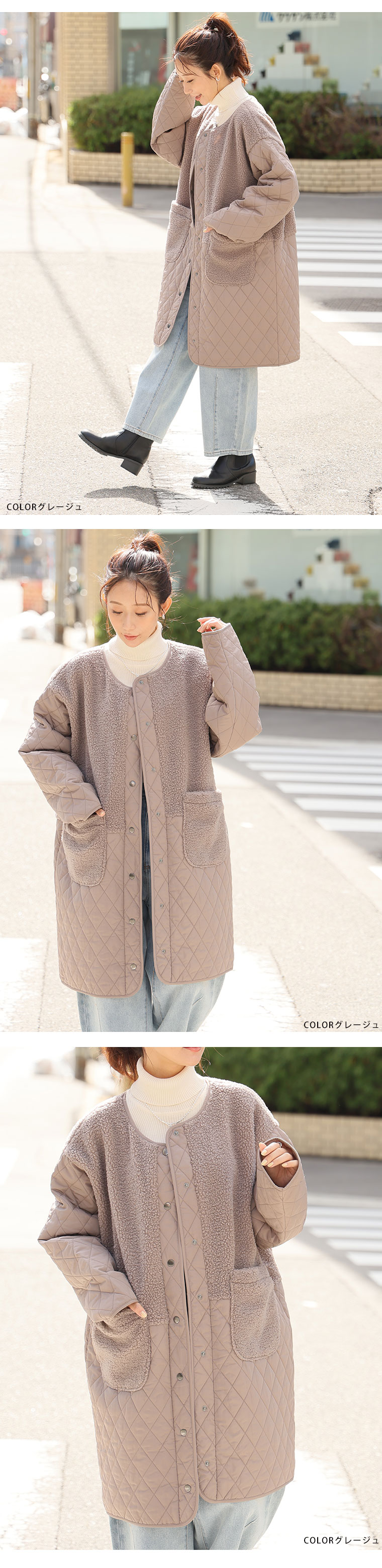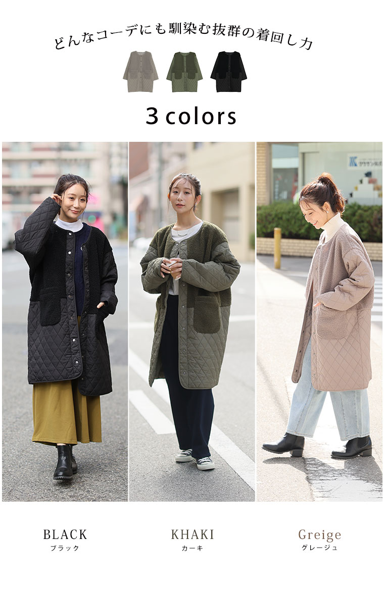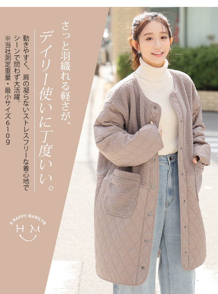 身頃をボアで切り替えることで、シルエットにメリハリが出てすっきり、スタイルアップ魅せが叶う。1枚で着映えるデイリーの主役に。