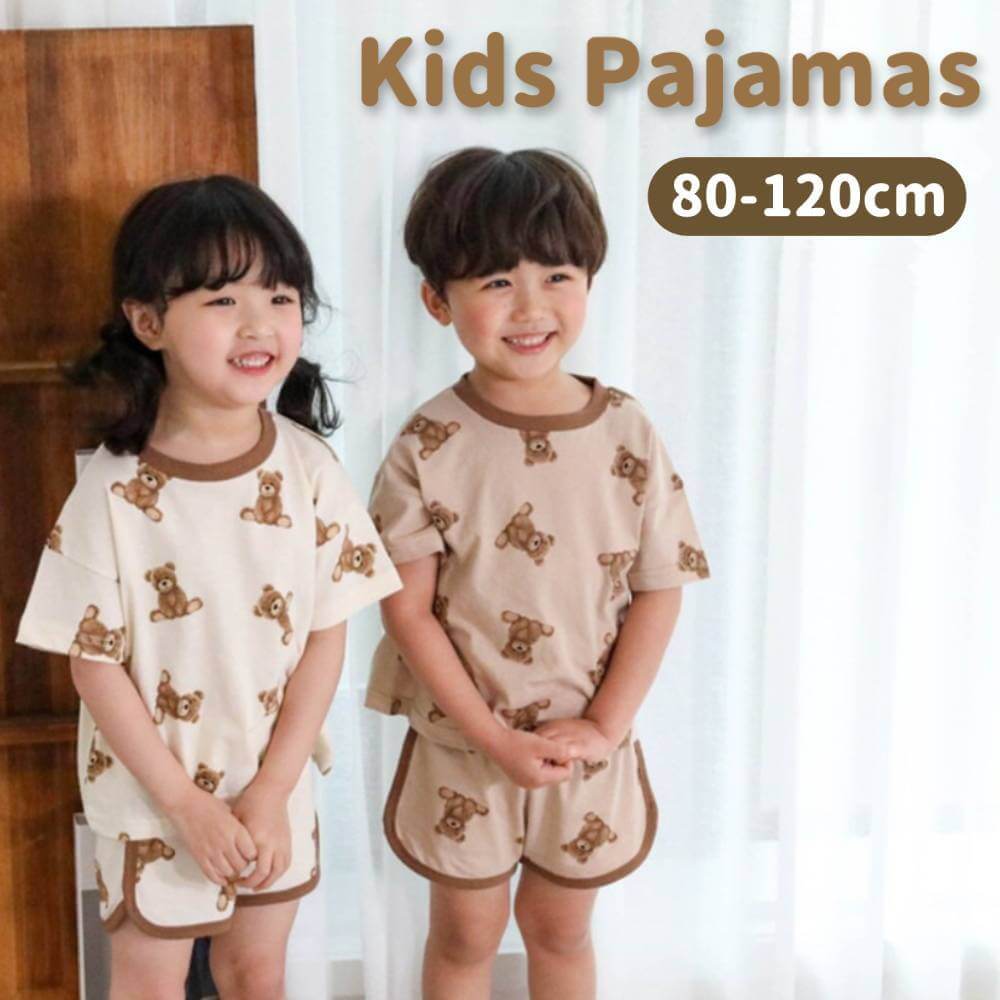 | 商品特徴・素材 | ・クマ柄のおしゃれで可愛いキッズパジャマ♪ ・パジャマとしてはもちろん、部屋着として着用しても可愛い! ・コットン素材で肌触りが良く、着心地も抜群です! |