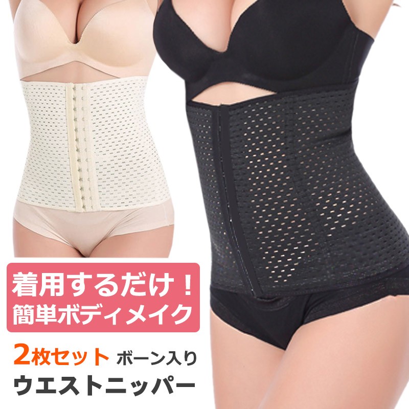 | 商品特徴・素材 | ・手軽に着用するだけで美しいウエストラインをつくれるウエストニッパー。時間がなくてエクササイズできない方や、すぐに美しいボディラインが欲しい方などにピッタリなアイテムです。 ・フロントホック式で、簡単に着用出来ます。3つのホックで調節が可能。伸縮性抜群の生地を使用しているので、フィット&着用感も抜群です。 ・4つのボーンが入っているので、美しいラインをつくるだけでなく、腰回りをしっかり支え美しい姿勢を意識付けることが出来ます。 ・通気性抜群のメッシュ素材を使用しているので、長時間着用時でも快適に過ごすことが出来ます。 |