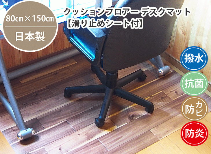 チェア・デスク用床保護マット 130cm×182cm 1.8mm厚 (抗菌 撥水 防炎 防カビ 滑り止め)クッションフロア テレワークの床保護に最適