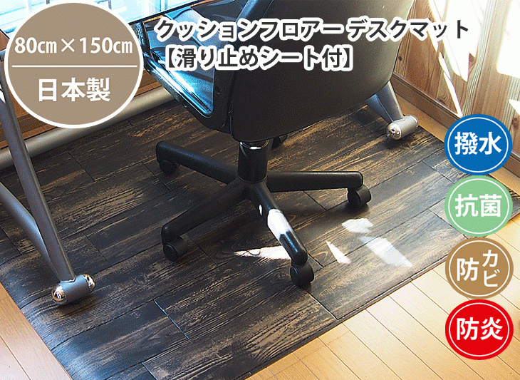 チェア・デスク用床保護マット 100cm×170cm 2.3mm厚 (抗菌 撥水 防炎 防カビ 滑り止め)クッションフロア テレワークの床保護に最適
