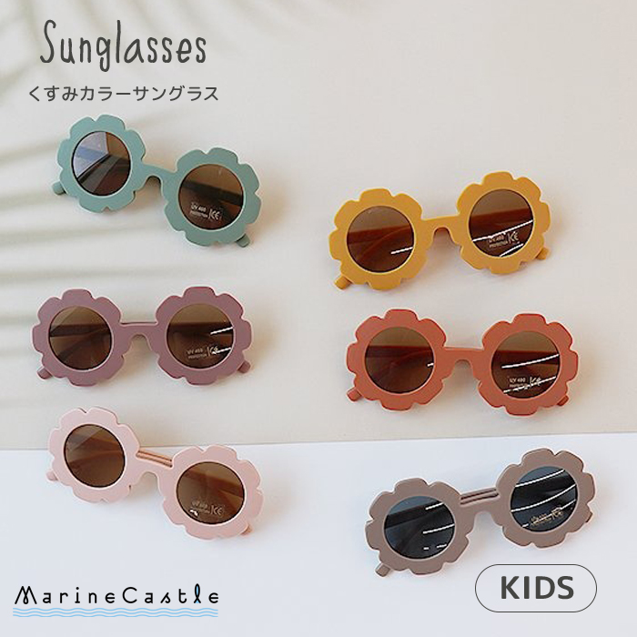 | *紫外線からお子様の目を守るくすみカラーが可愛いサングラスです。 *フラワーモチーフのフレームがとてもかわいい♪ *派手過ぎずコーディネートのアクセントになります。 *UVカット率99%のUV400。 *日差しの強い日のお散歩やレジャーにおすすめです。 *普段使い、撮影用、お出かけ用、プレゼント等色々使えますのでぜひお試しください。 | ||