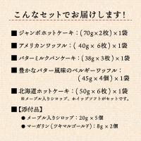 | 内容量 | ■ジャンボホットケーキ:140g(2枚入)■北海道ホットケーキ:【ホットケーキ】100g(2枚入)×3袋【メープル入りシロップ】20g×3袋【ホイップソフト(乳等を主要原料とする食品)】:9g×3袋 ■バターミルクパンケーキ:114g(3枚入) ■アメリカンワッフル:240g ■豊かなバター風味のベルギーワッフル:180g(4個) ■メープル入りシロップ:20g×5袋 ■マーガリン:8g×2個 |