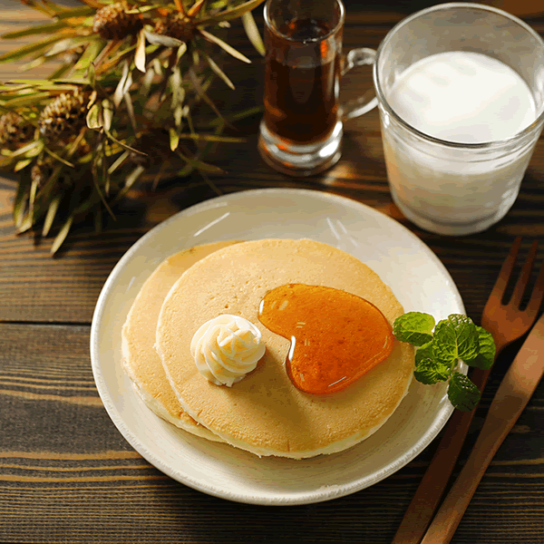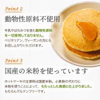 特徴:米粉を使用したホットケーキは食物アレルギー特定原材料等28品目不使用で、卵、乳製品、小麦ももちろん使用していません。メープル入りシロップとマーガリンも食物アレルギー特定原材料等28品目不使用です。