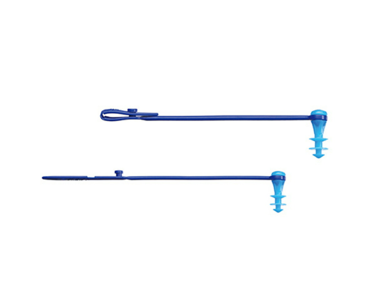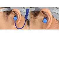 2通りの付け方が可能なシリコーン製コード付き耳栓。