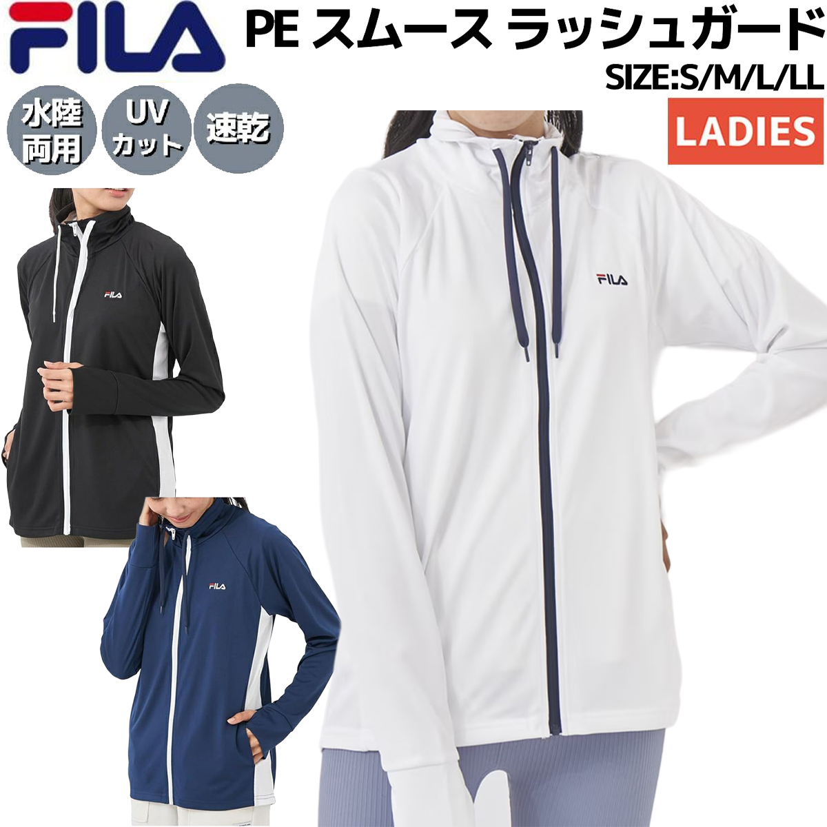 フィラ FILA PE スムース ラッシュガード レディース 水陸両用 長袖 ジャケットスポーツ 水泳 スイム 海水浴 ラッシュガード 324671 BK NV WH