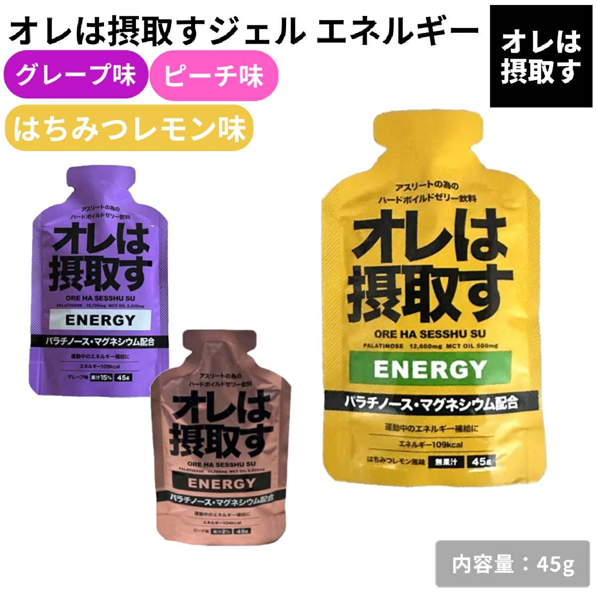 オレは摂取す OREHASESSHUSU オレは摂取すジェル エネルギー グレープ味 ピーチ味 はちみつレモン味 ゼリー飲料 スポーツ 311200