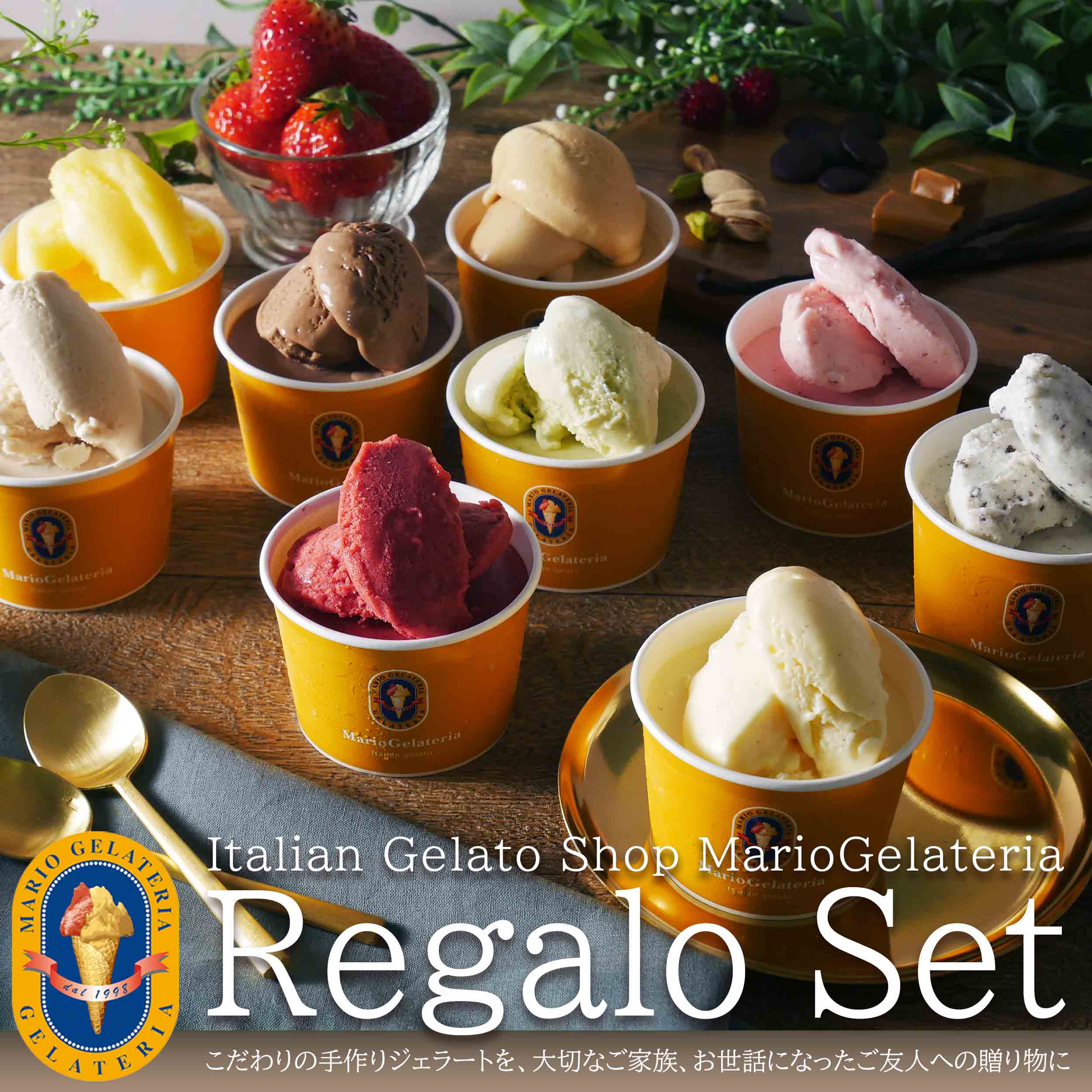 【商品説明】マリオジェラテリアは東京の百貨店に店舗を持つ、1998年創業の手作りイタリアンジェラートの専門店です。 昔ながらのジェラート製法にこだわり、日本人が好む、甘すぎずしつこくない味わいを大切にしています。厳選した食材の自然で濃厚な味わいと、安定剤を最小限に控えたことによる、とろけるような口溶けの良さが自慢です。 年間100種類にも及ぶ新作ジェラートのアイデアは、ジェラートマエストロ、塩ソムリエ、店頭のスタッフ、時にはお客様との会話の中からヒントを頂き、生まれています。お客様の「笑顔」と「驚き」の為に、納得するまで何度も何度も試作を繰り返し、完成します。 高品質・安心・安全なジェラートは他では味わう事の出来ないオリジナリティ溢れたフレーバーばかり。こだわりのプレミアムジェラートを、大切な方へ、お世話になった方への贈り物に、ぜひご利用ください。 もちろんご自宅用にもおすすめです。