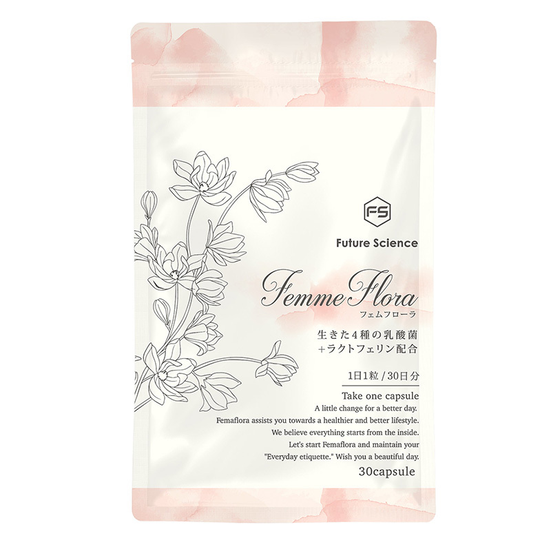 フェムフローラは不快感やムズかゆみ、体調による変化等のさまざまな悩みに4つの乳酸菌とラクトフェリンで内側からアプローチするサプリメントです。