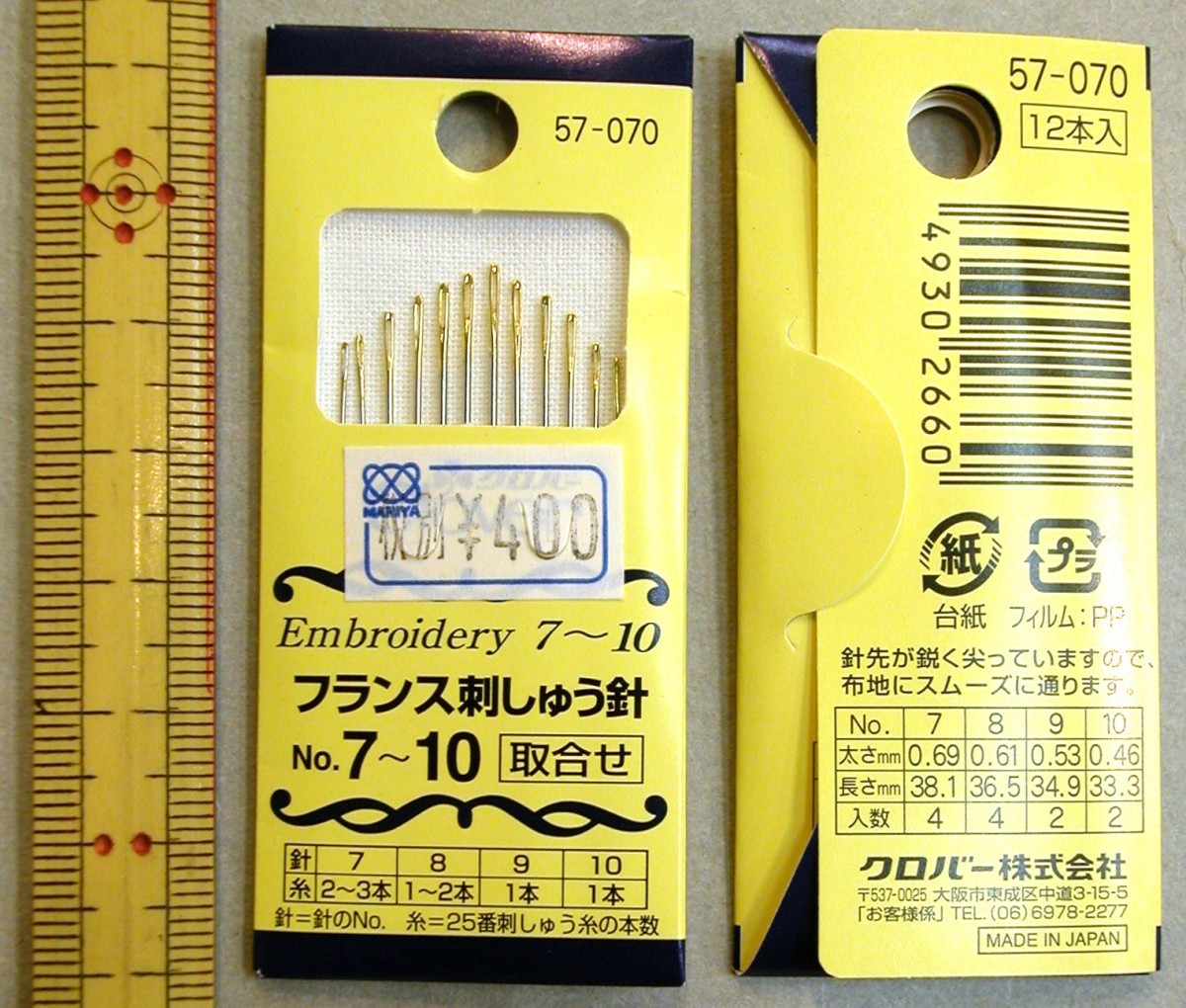 メール便可 57-070 クロバー フランス刺しゅう針 取合せ 4種セット(全12本)