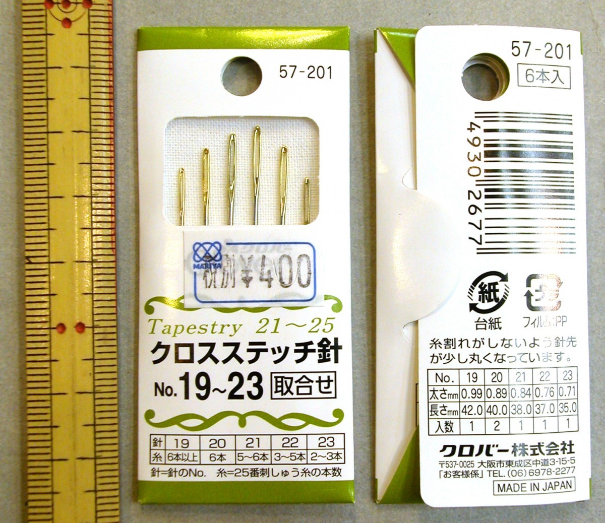 メール便可 57-201 クロバー クロスステッチ針 取合せ NO.19〜23 5種セット(全6本)