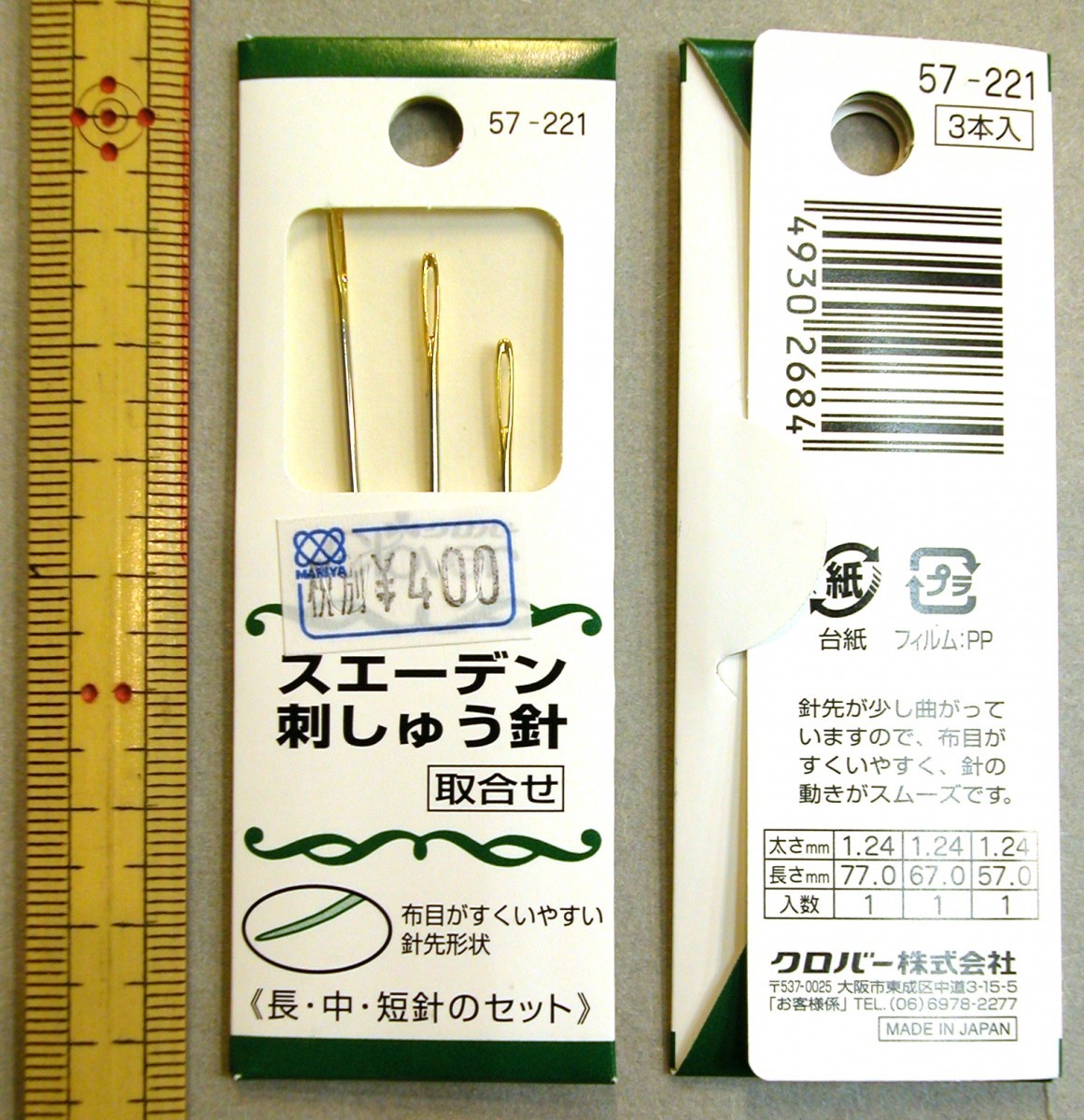 メール便可 57-221 クロバー スエーデン刺しゅう針 取合せ 3種各1本セット(全3本)
