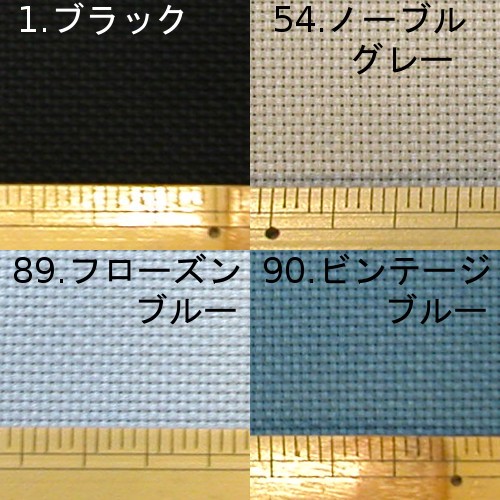 1.ブラック、54.ノーブルグレー、89.フローズンブルー、90.ビンテージブルー