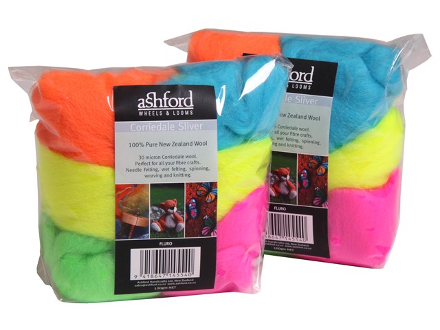 メール便可 アシュフォード 蛍光色羊毛150gパック(全5色各30g) コリデールスライバー ASHFORD FLURO CORRIDALE SLIVER フルーロ ネオン