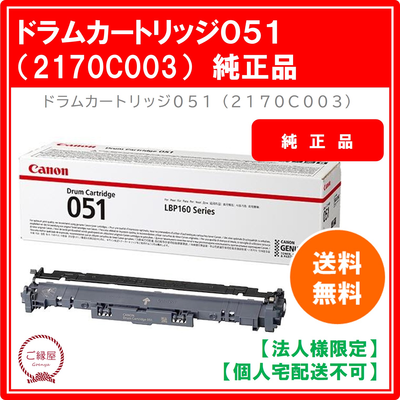 【法人様限定】キヤノン ドラムカートリッジ051 CRG-051DRM 2170C001 国内純正品 1個