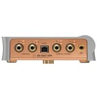 DS-DAC-10Rはお手持ちのオーディオ・システムに加えて頂くことをイメージし、高級感のあるダイキャスト・ボディに、表面はヘッドホン・ボリューム / 端子だけのシンプルなデザイン。ボリューム・ノブ部に光るLEDは、再生フォーマット表示や録音中を示すインジケーターとして機能します。また、リア・パネルの銅メッキ板や、金メッキの端子など、内部だけでなく目に見える部分にもこだわった高品質設計となっています。