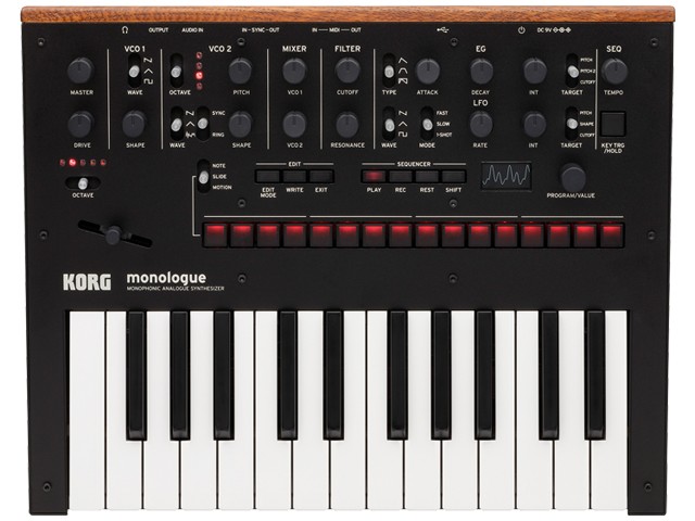 KORG MONOPHONIC ANALOGUE SYNTHESIZER monologue monologue-SV monologue-BK monologue-RD monologue-BL monologue-GD minilogue MS-20 mini コルグ モノフォニック アナログ シンセサイザー モノローグ シルバー ブラック レッド ダークブルー レッド ゴールド アナログ音源 16ステップ シーケンサー SYNC IN OUT MIDI 25key 25鍵盤