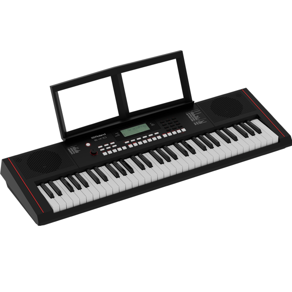 E-X10 は、ローランドならではの高品位なサウンドや多彩な機能で、鍵盤初心者や気軽に演奏を楽しみたい方にぴったりのキーボードです。表現力豊かなアコースティック・ピアノをはじめとした多彩な音色、ひとりバンド演奏を楽しめる自動伴奏機能、1 台で弾き語りができるマイク入力端子をそなえ、演奏の楽しさが広がります。自分の演奏を客観的に確認できる録音機能など、練習をサポートする機能も。スタイリッシュでコンパクトなボディにパワフルなステレオ・スピーカーをそなえ、電池駆動にも対応しているので、いつでもどこでも演奏を楽しめます。