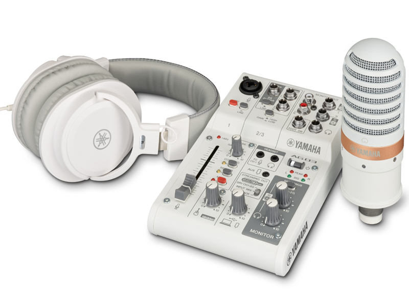 3チャンネルのライブストリーミングミキサーAG03MK2に加え、ボーカルや楽器のライブ演奏に最適な単一指向性コンデンサーマイクYCM01、スタジオ品質のヘッドホンYH-MT1、さらにXLRマイクケーブルが付属します。