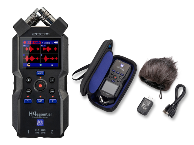 『H4essential』は音楽のレコーディングに最適。2系統のXLR/TRSフォーン入力とXYステレオマイクを使って、ライブやリハーサルを簡単に録音できます。32bitフロートで、ゲイン調整も不要です。