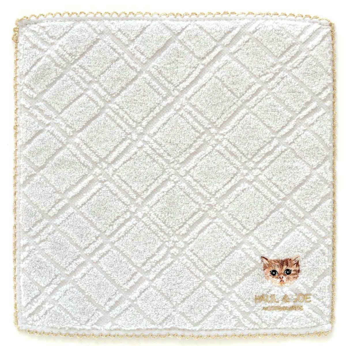「ポール & ジョー」のブランドのアイコン、猫の「ヌネット」の刺繍がアクセントのタオルハンカチ。