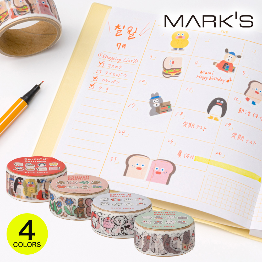 マスキングテープ・セパレート A マステ パン くま 犬 イヌ 猫 ネコ ROMANE 韓国雑貨 Brunch Brother ブランチブラザー マークス