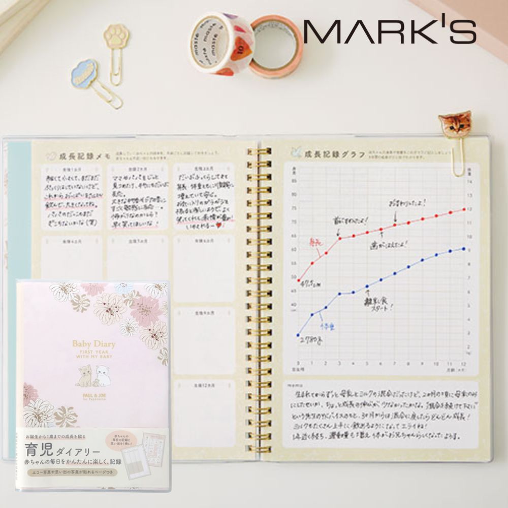 ポールアンドジョー ポール&ジョー 育児日記 育児ダイアリ ー 成長記録 子供 ベビーダイアリー・ A5 クリザンテーム・ピンク