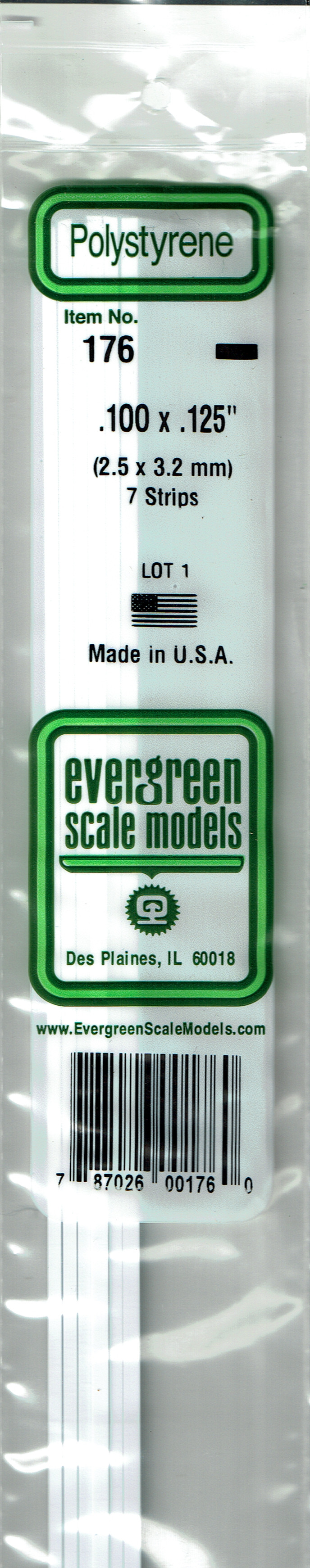 エバーグリーン .100x.125 プラ棒 2.5x3.2mm 7本入り