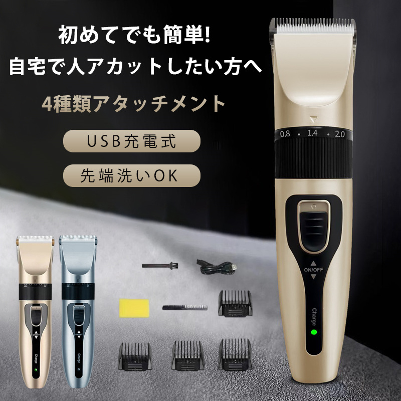電動バリカン 電気バリカン バリカン 散髪 ヘアカッター USB充電式 防水 刈り上げ 子供カット 切れ味抜群 5段階 低騒音 4種類アタッチメント
