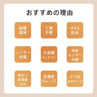 ◆ソーラー充電式だから電気代ゼロ円!電源配線も不要!