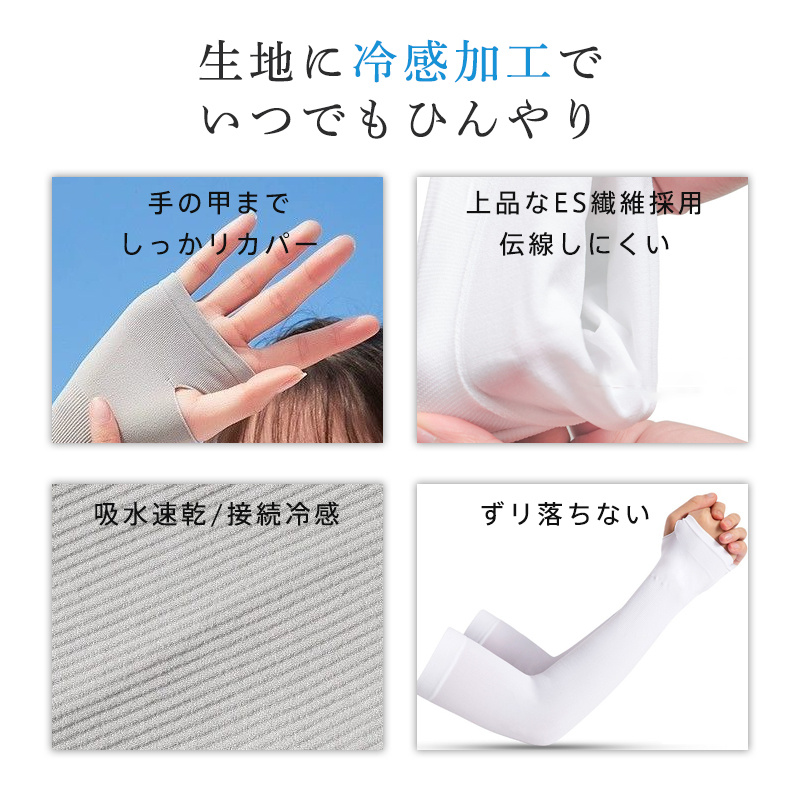 ◆日焼け対策:高エネルギーの紫外線を強力に吸収し、太陽の有害な損傷から腕を最大限に保護できる紫外線吸収剤で処理されます。