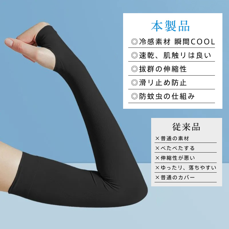 ◆通気性抜群:マイナス5℃の体感で暑い夏でも苦しくならない冷感アームカバー