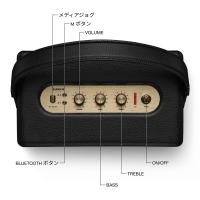ワンタッチで、ロータリーノブよりすべてをコントロール低音や高音の調整、オン/オフの設定、曲の再生/停止/スキップはすべてワンアクションでコントロールロータリーノブより可能です。Marshallの「M」ボタンを使って、即座にプリセット状態へもアクセス可能です。