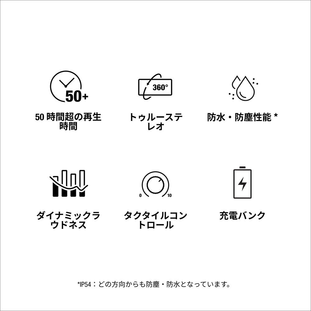 従来のモデルより倍増、最大50時間のポータブル再生時間最初の曲を寝室で再生し始め、アンコールはバルコニーで再生。本製品は、屋内外問わず長時間、高音質なサウンドを楽しめるポータブルスピーカーです。ポータブルでも最大50時間の再生時間が可能なため、バッテリー切れを気にすることなく、お気に入りのプレイリストを最後までお楽しみいただけます。