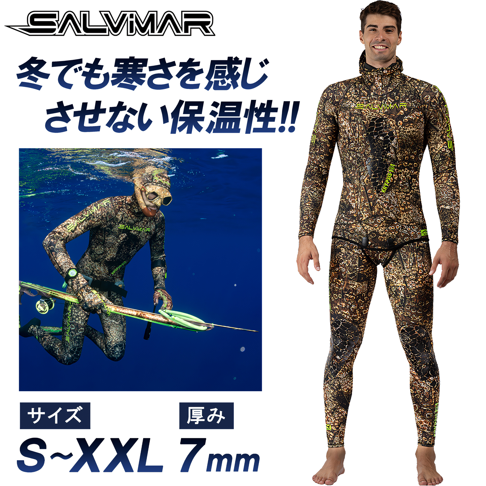 Salvimar サルビマー ウェットスーツ 7mm 魚突き スピアフィッシング ダイビング シュノーケリング 素潜り 銛 モリ 2ピース 裏スキン ネオプレーン KRYPSIS